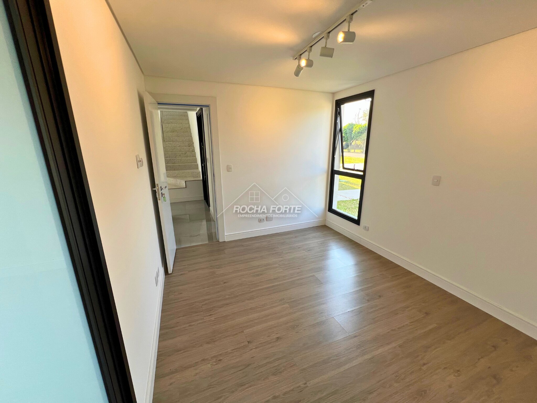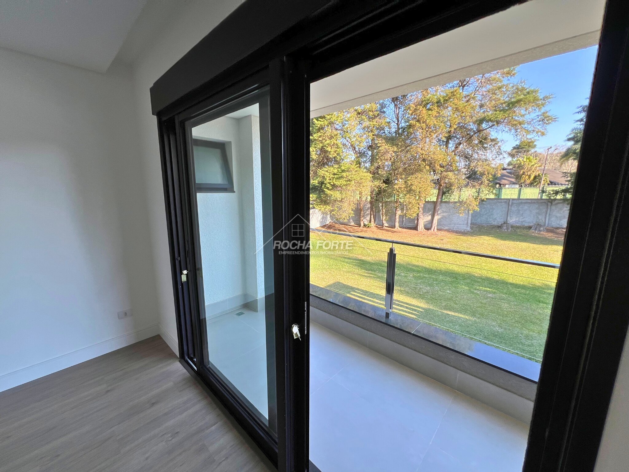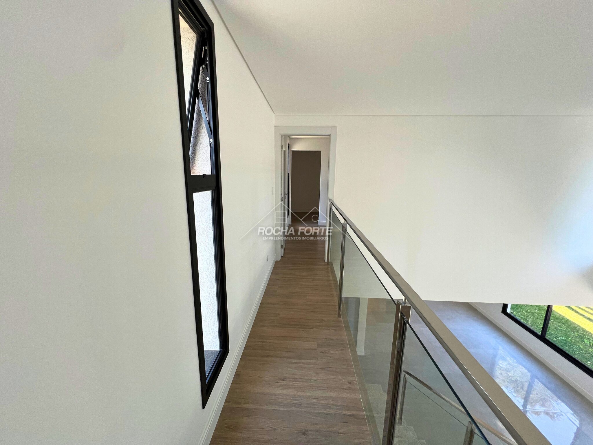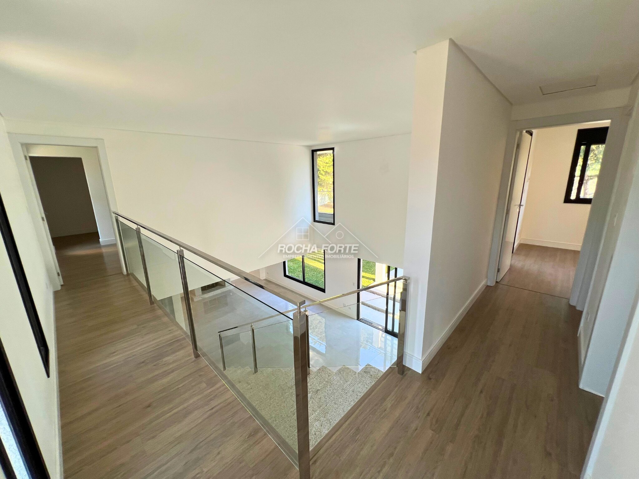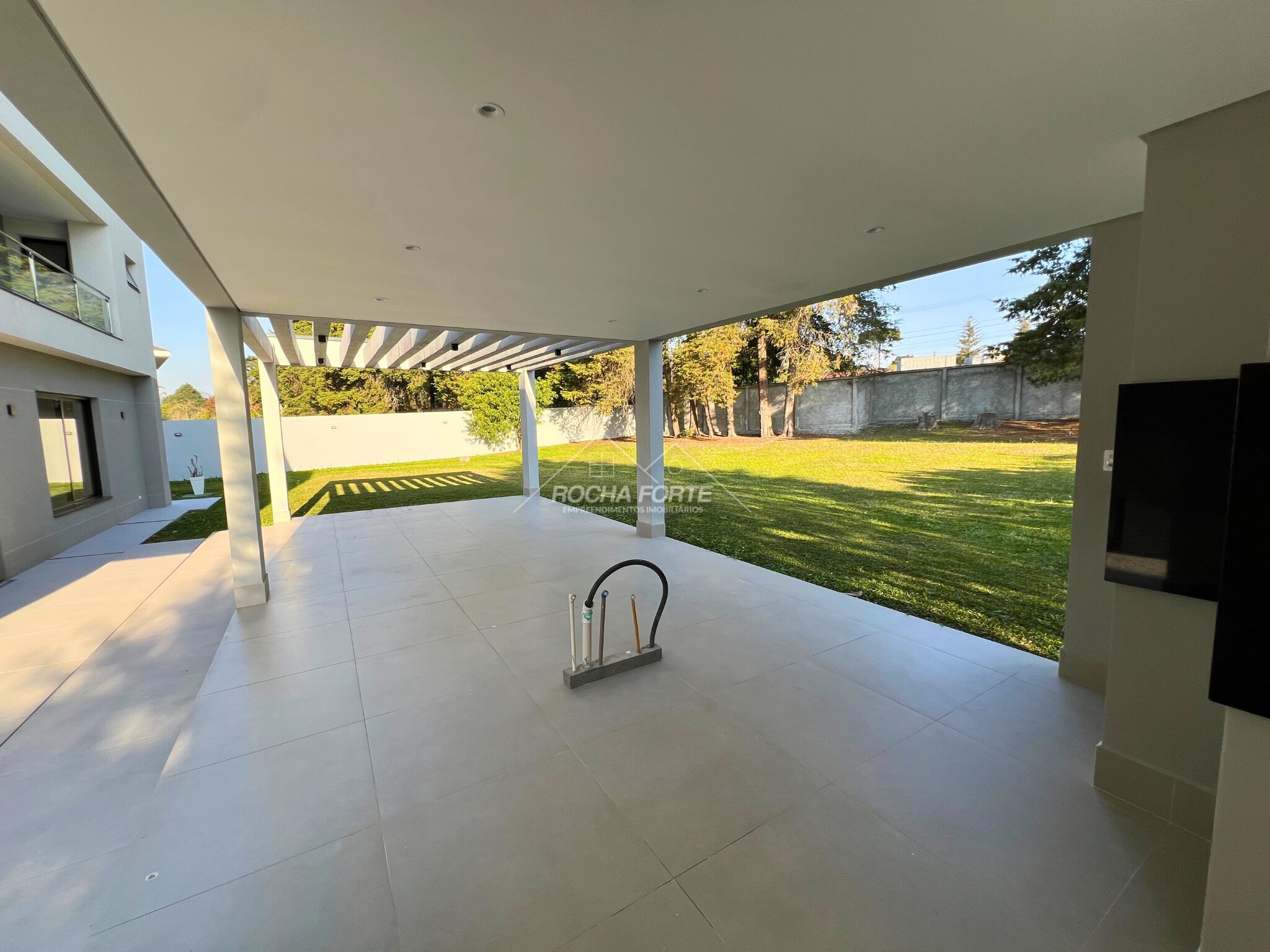 1º pavimento: ampla sala para 3 ambientes com lareira, lavabo, cozinha e lavanderia bem espaçosa com 02 pontos para aquecedor. Conta ainda com uma suíte (que pode ser usada como escritório, inclusive ja tem um acesso independente direto por fora da casa), garagem coberta para até 03 carros + 06 descobertas. No 2º pavimento: São 3 quartos, sendo: 01 suíte com closet e sacada, 01 demi-suíte com sacada e um quarto. Belo terraço descoberto onde pode ser feito um paisagismo. Todos os quartos com persianas automatizadas. Na parte dos fundos, temos um amplo espaço gourmet com churrasqueira e forno de pizza.