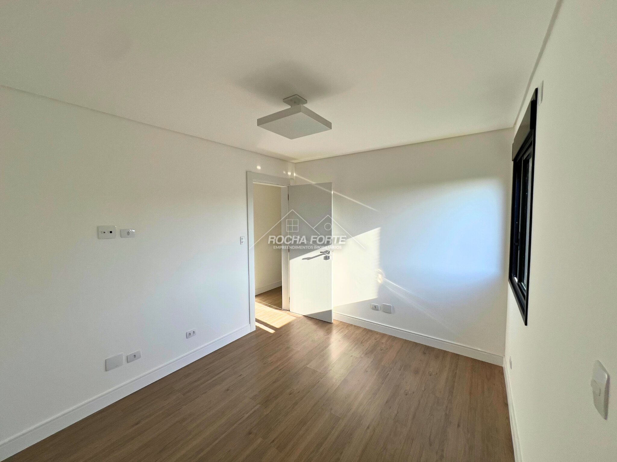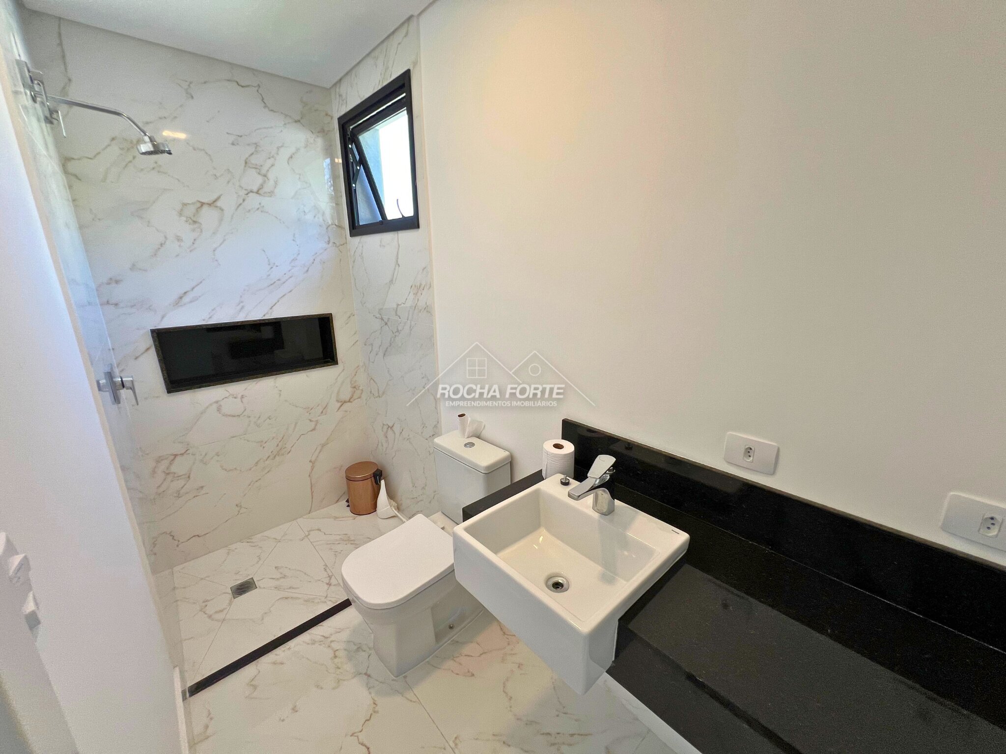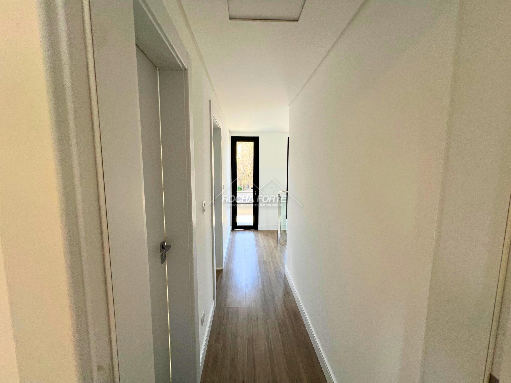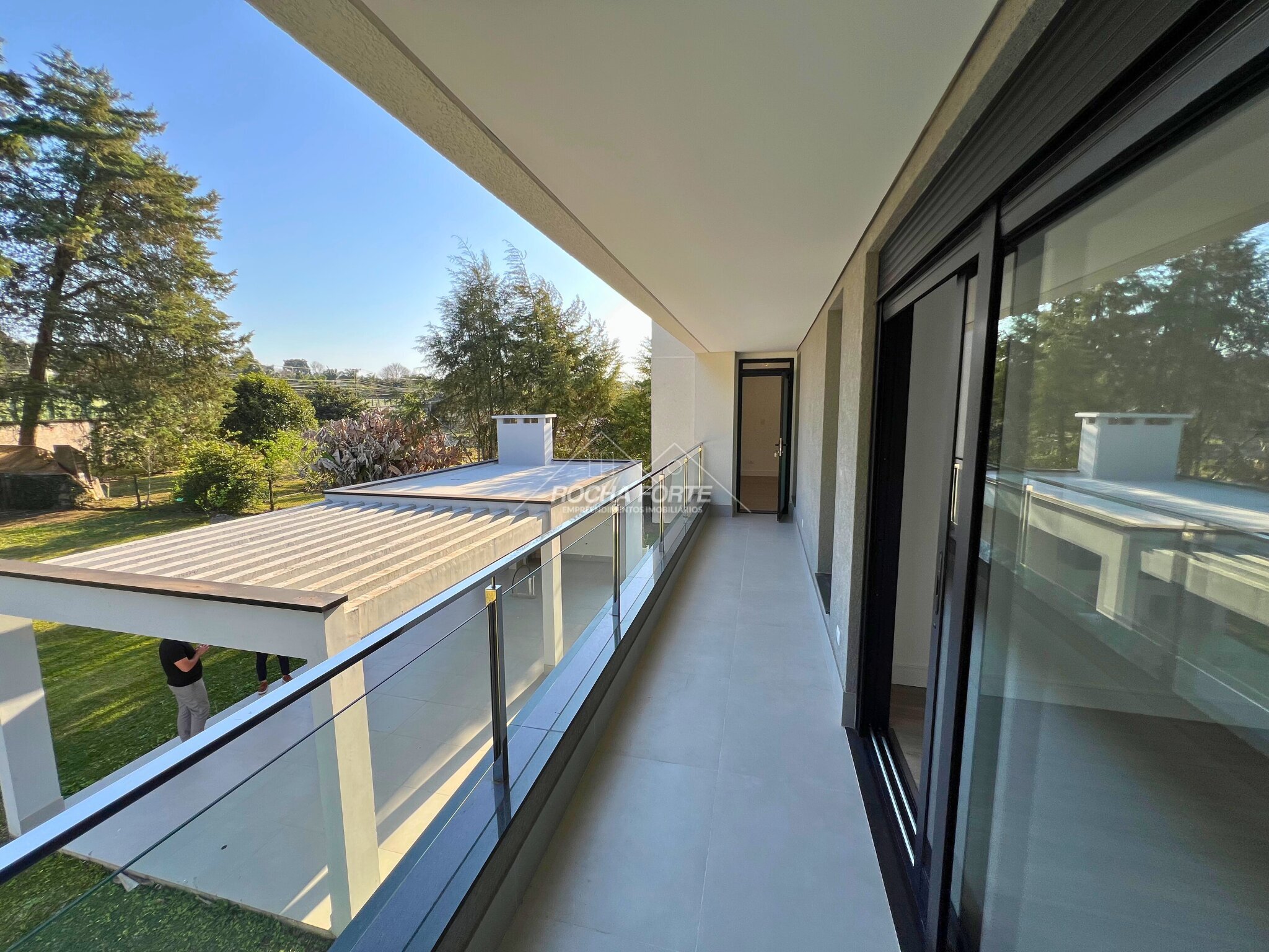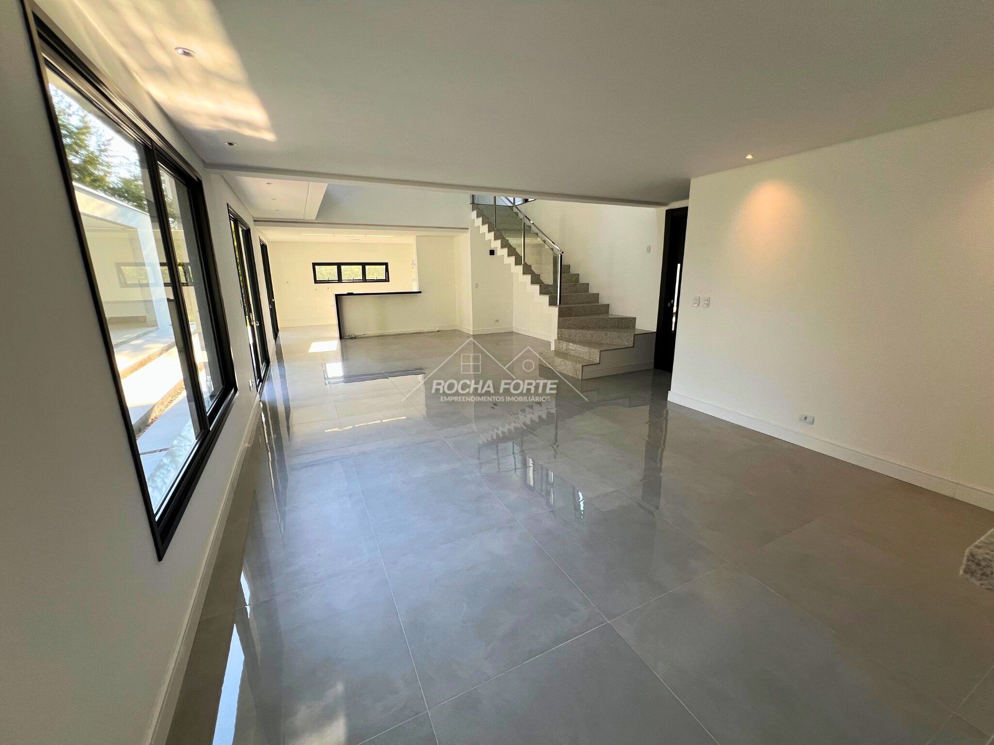 1º pavimento: ampla sala para 3 ambientes com lareira, lavabo, cozinha e lavanderia bem espaçosa com 02 pontos para aquecedor. Conta ainda com uma suíte (que pode ser usada como escritório, inclusive ja tem um acesso independente direto por fora da casa), garagem coberta para até 03 carros + 06 descobertas. No 2º pavimento: São 3 quartos, sendo: 01 suíte com closet e sacada, 01 demi-suíte com sacada e um quarto. Belo terraço descoberto onde pode ser feito um paisagismo. Todos os quartos com persianas automatizadas. Na parte dos fundos, temos um amplo espaço gourmet com churrasqueira e forno de pizza.