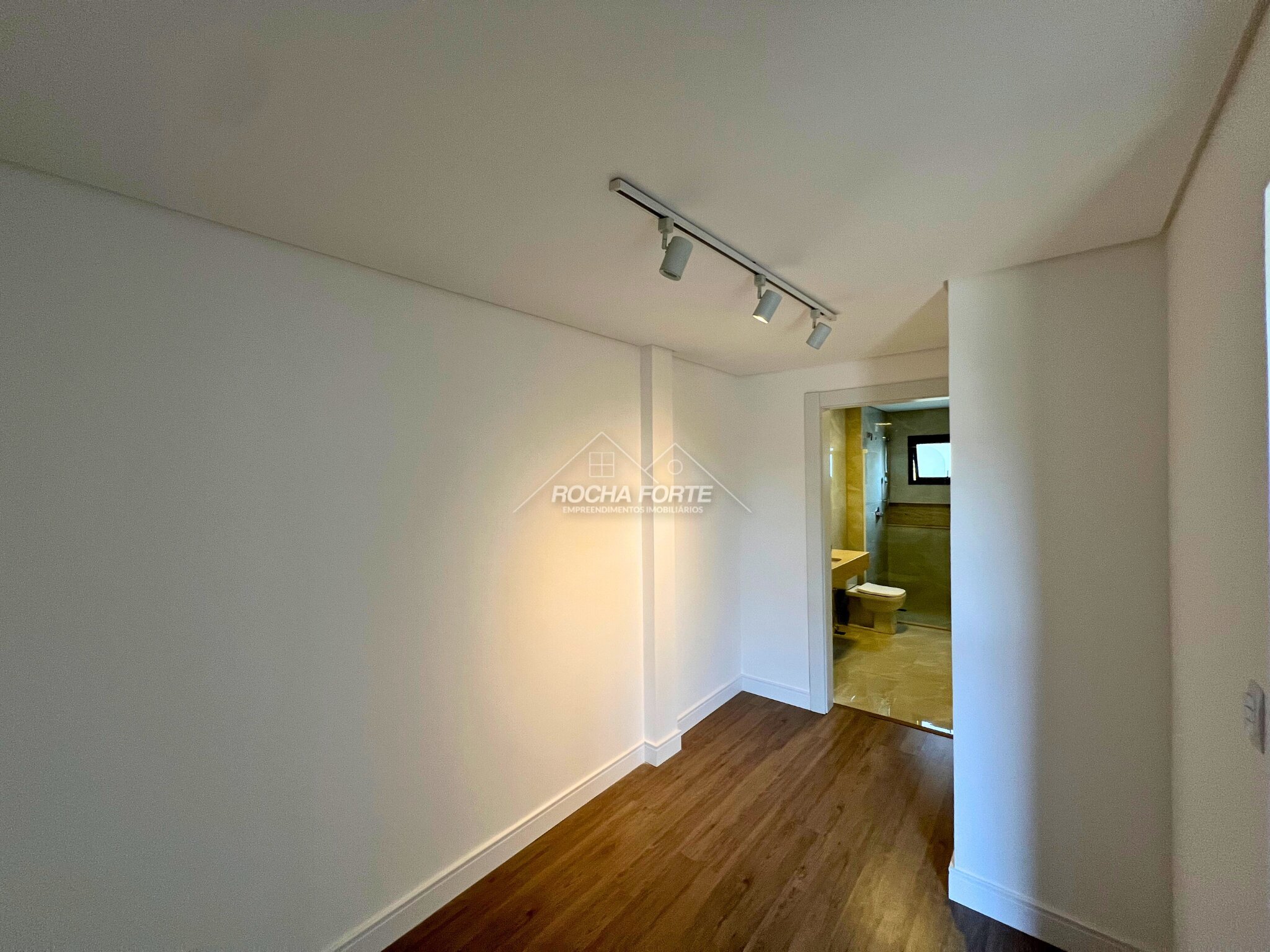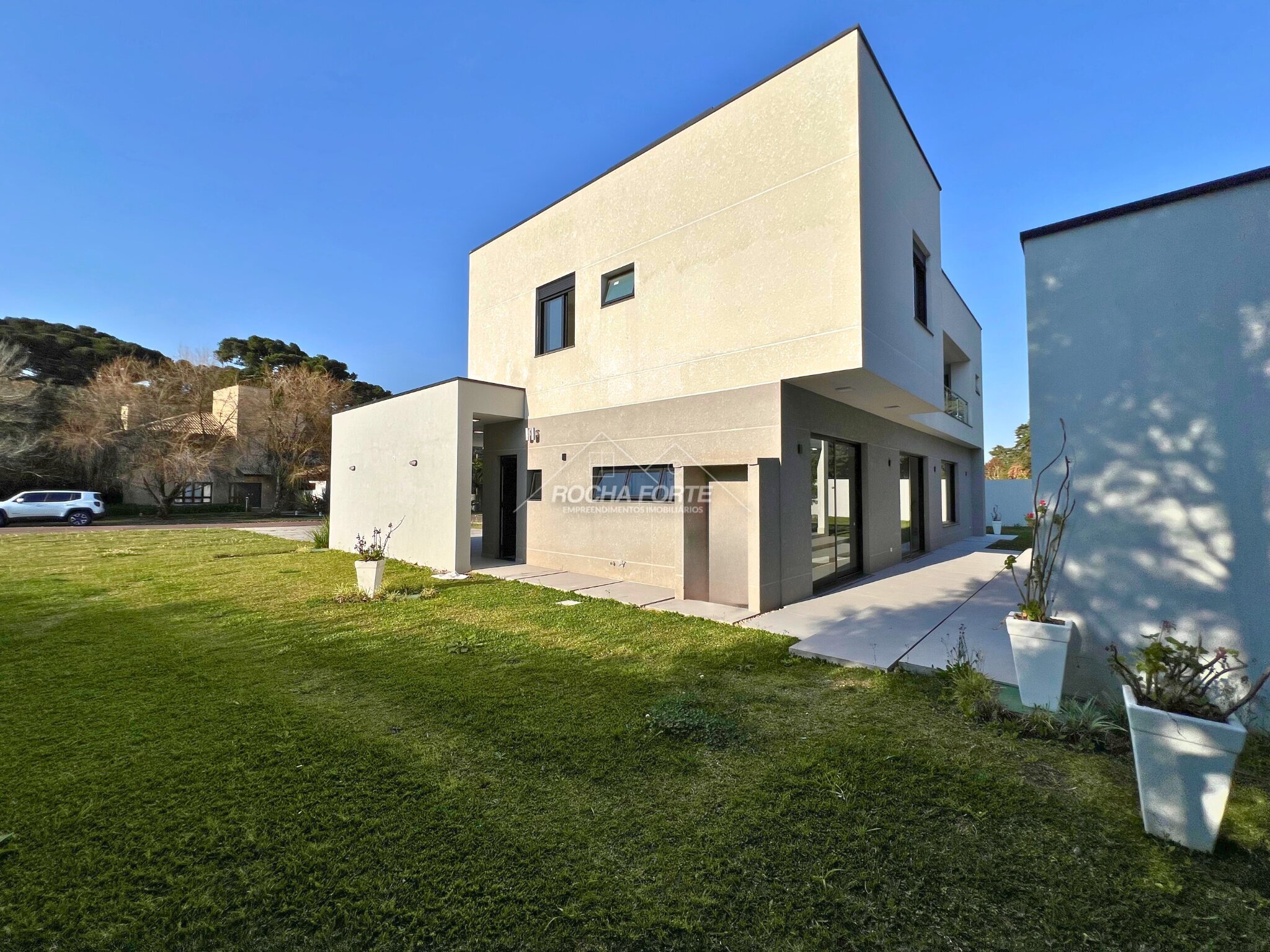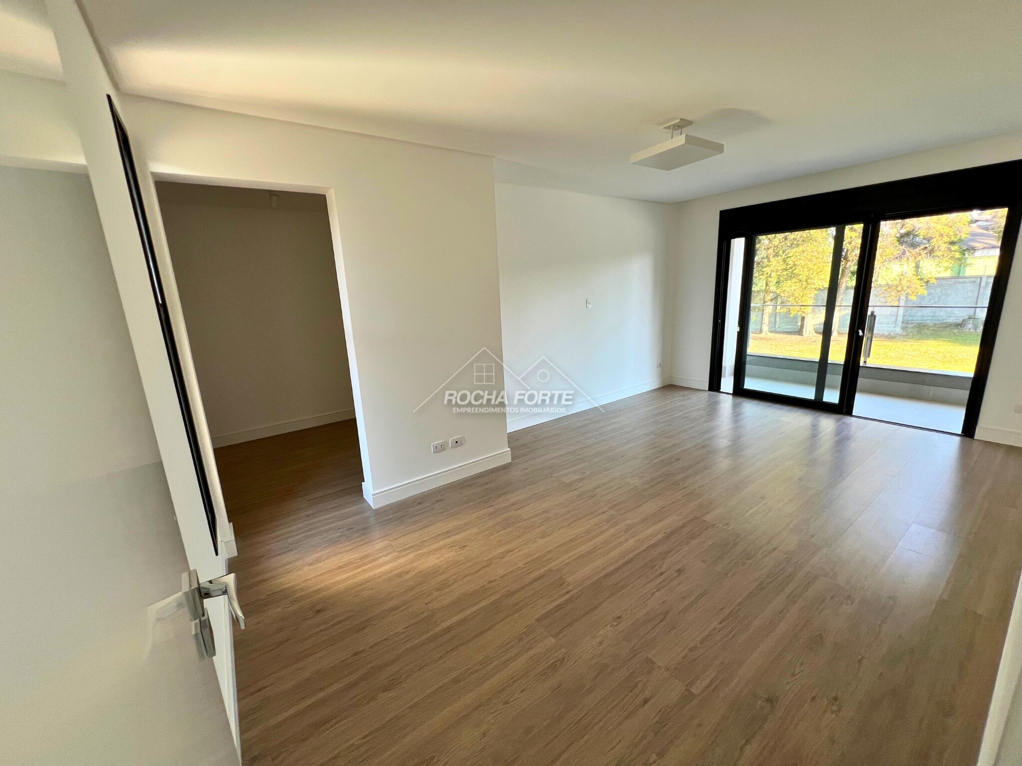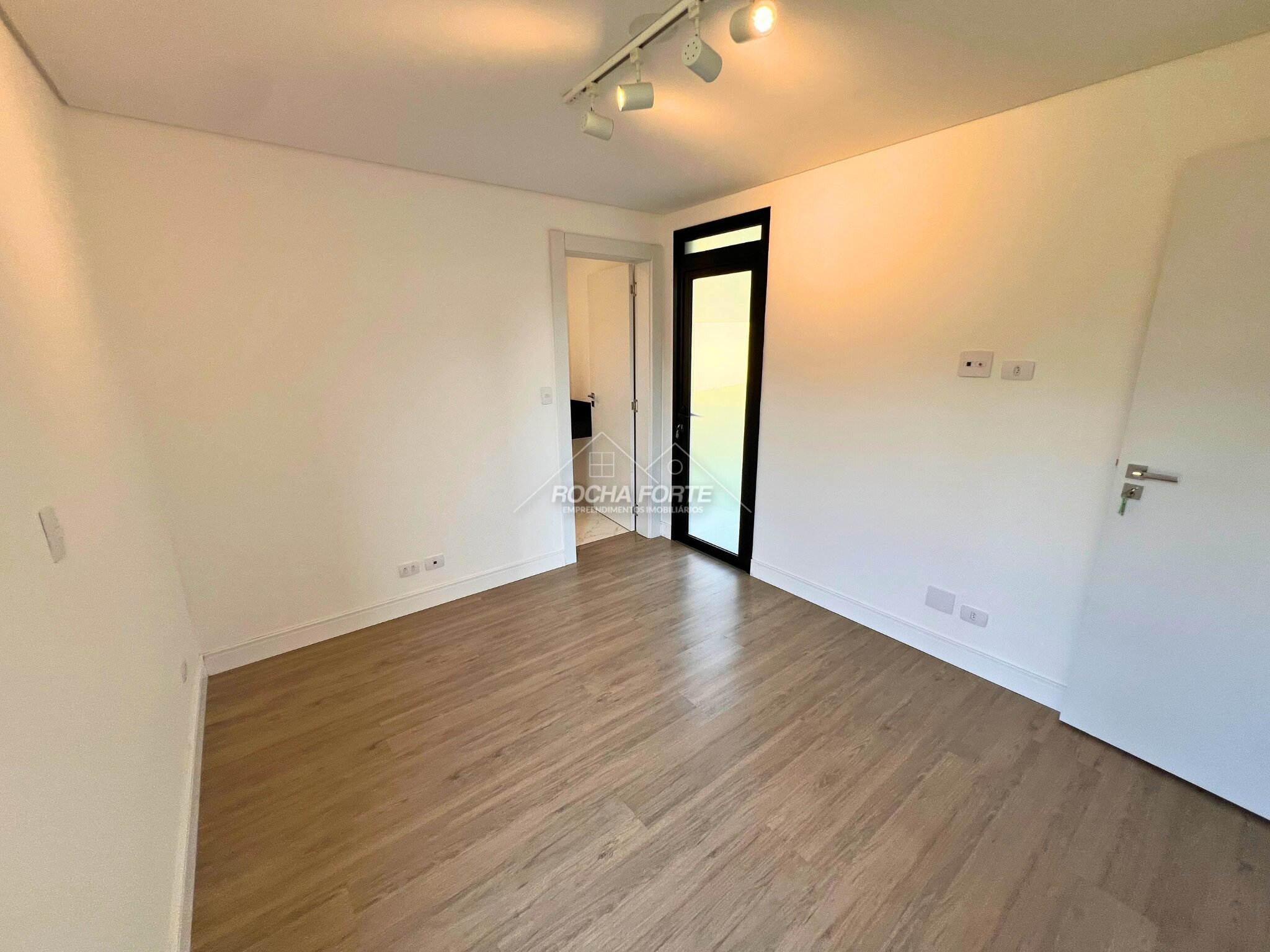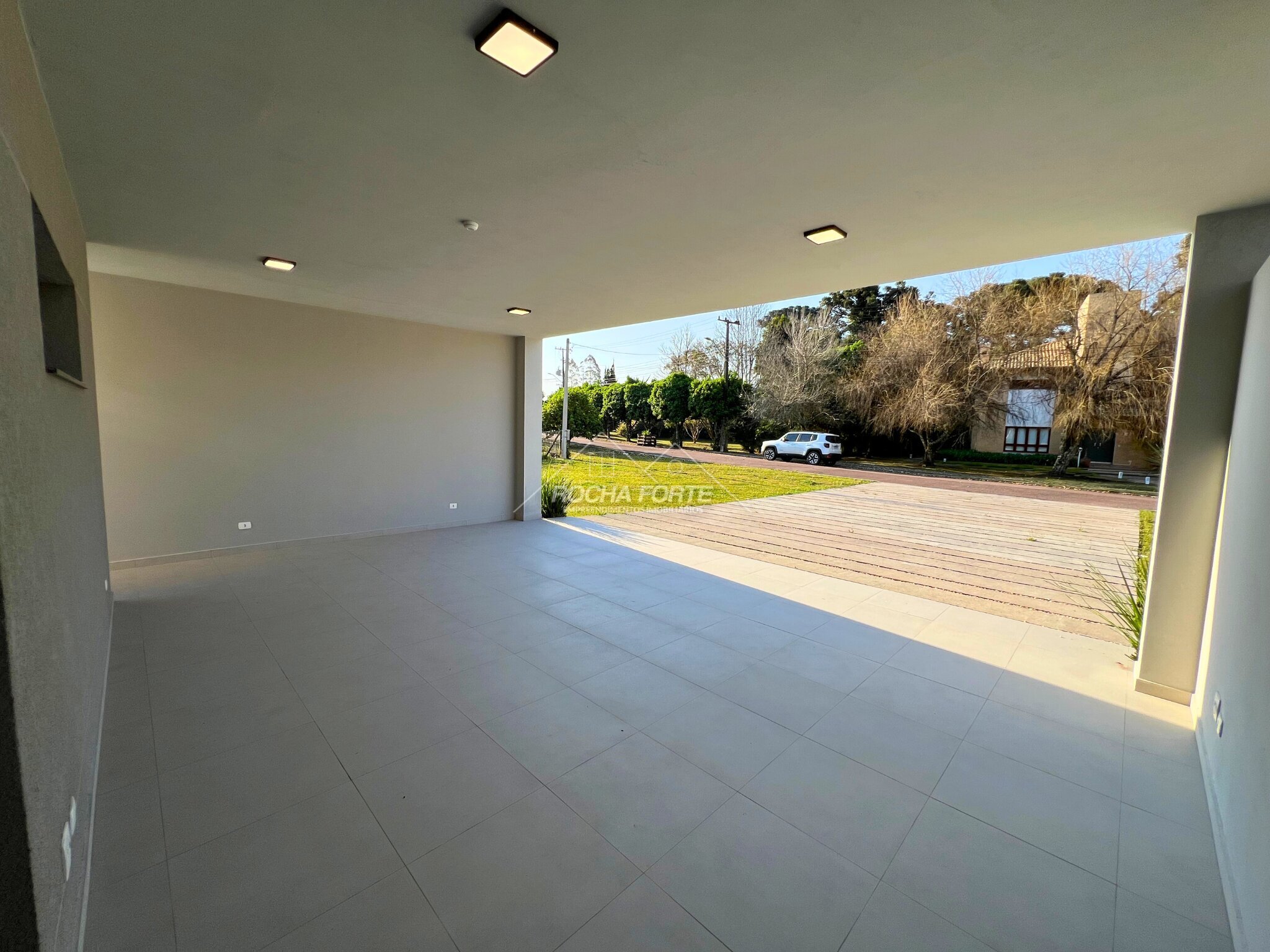 1º pavimento: ampla sala para 3 ambientes com lareira, lavabo, cozinha e lavanderia bem espaçosa com 02 pontos para aquecedor. Conta ainda com uma suíte (que pode ser usada como escritório, inclusive ja tem um acesso independente direto por fora da casa), garagem coberta para até 03 carros + 06 descobertas. No 2º pavimento: São 3 quartos, sendo: 01 suíte com closet e sacada, 01 demi-suíte com sacada e um quarto. Belo terraço descoberto onde pode ser feito um paisagismo. Todos os quartos com persianas automatizadas. Na parte dos fundos, temos um amplo espaço gourmet com churrasqueira e forno de pizza.