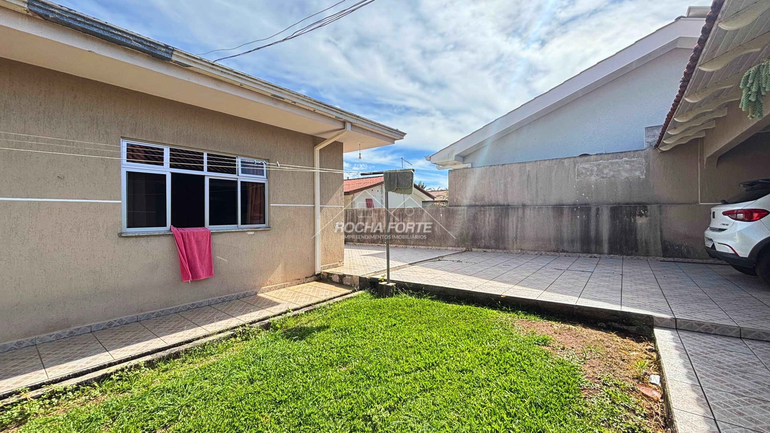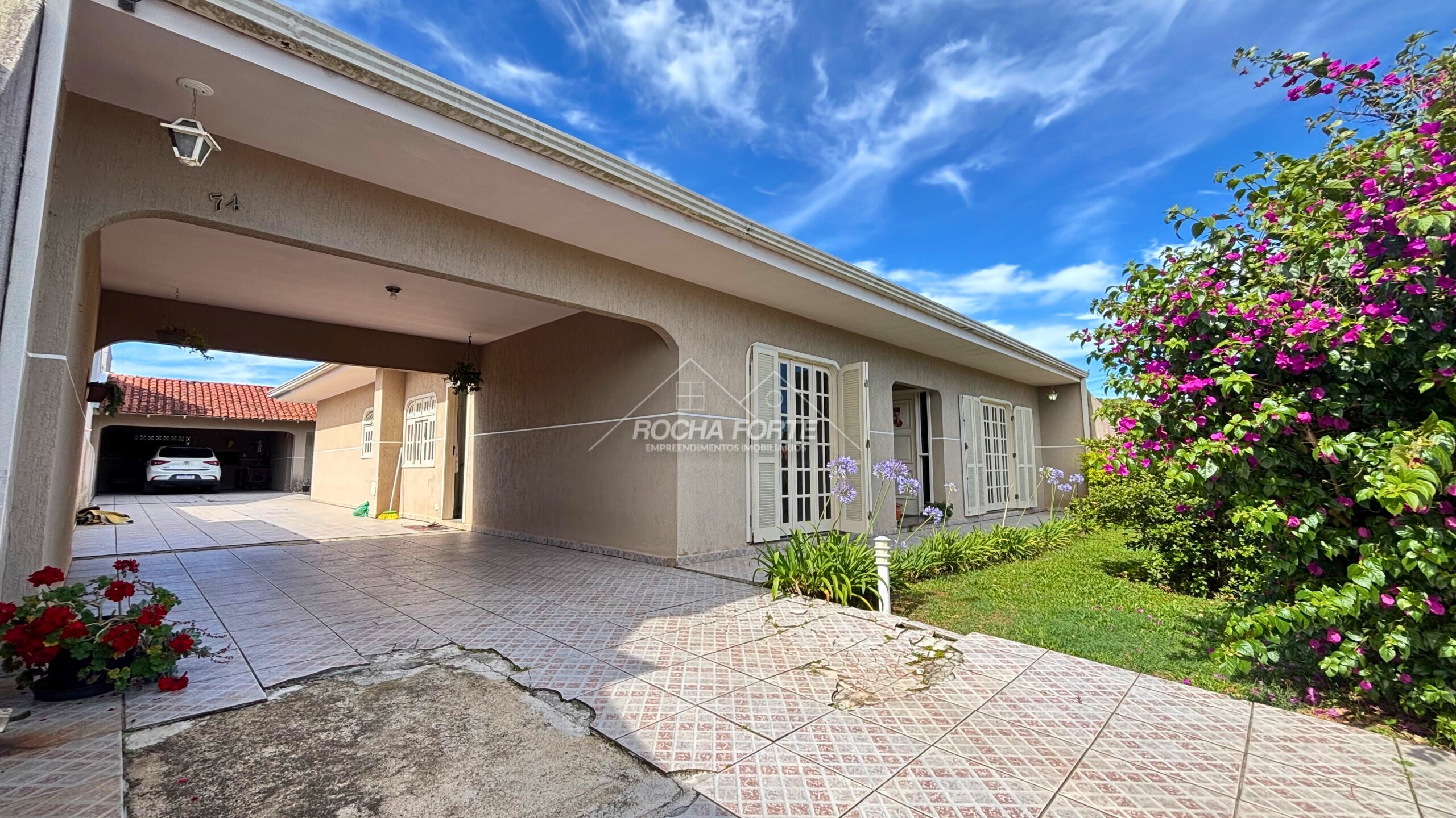 Casa térrea com aproximadamente 150m2, sendo: 03 quartos (01 suíte), sala, cozinha, banheiro social e garagem coberta.