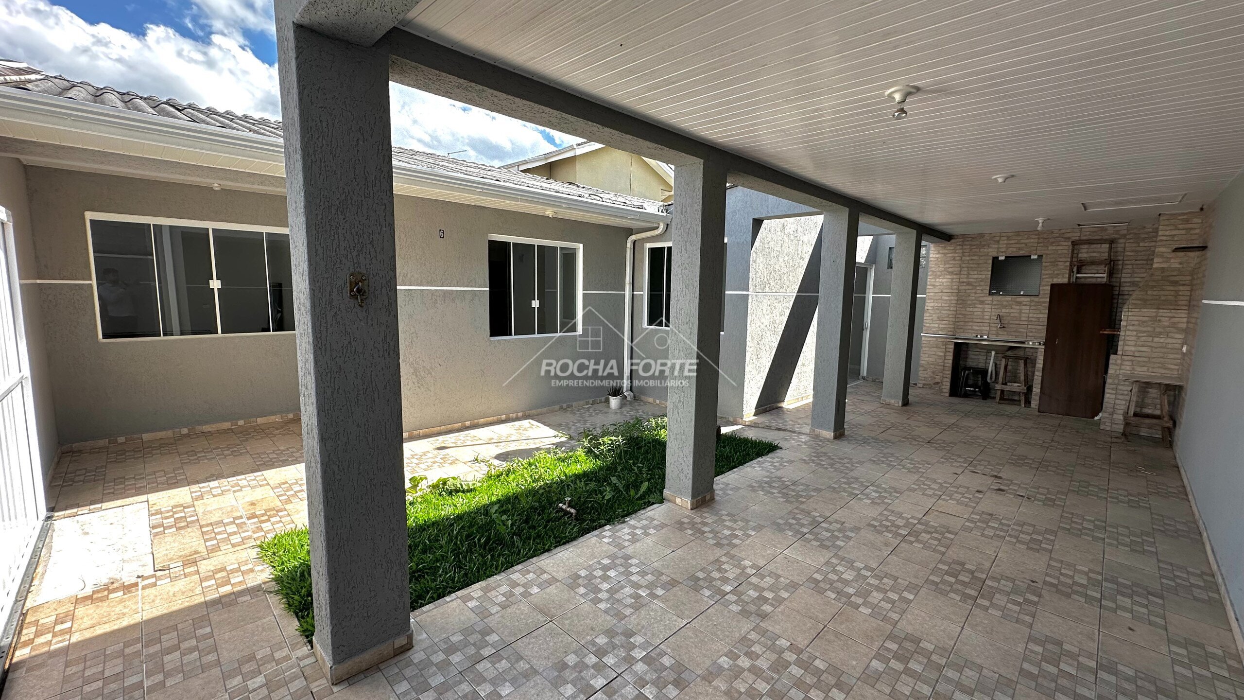 Casa com área construída de aproximadamente 120m², sendo: 03 quartos (01 suíte), sala de jantar, sala de estar/TV, cozinha com móveis planejados, banheiro social, área de serviço, garagem coberta para 02 veículos e churrasqueira. Possui portão eletrônico.